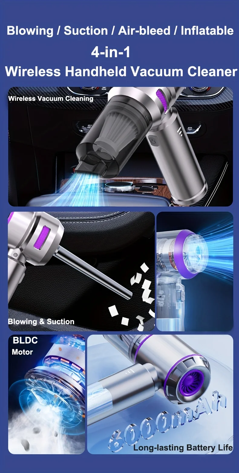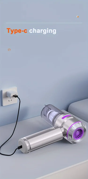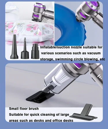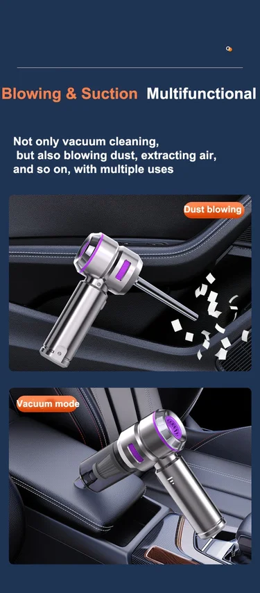 Special Features:Blow and suction 2 in 1 Material:Plastics Color:Blue,Purple Size:23x7x20.5cm Installation:Hand Held Item Type:Vacuum Cleaner..